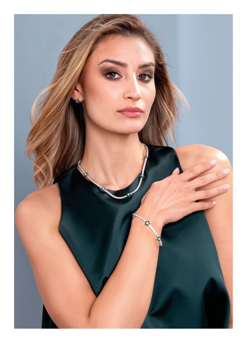 Bracciale Ottaviani Rodiato di scintillanti Fiori di Zirconi Verdi.